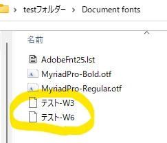パッケージ後の「Document fonts」フォルダ内には、合成フォント名のファイルが収集されています。