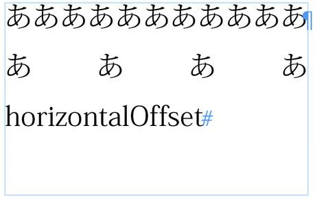 見てわかる通り、「間延び」部分の数値が見た目の文字間隔と異なるのは