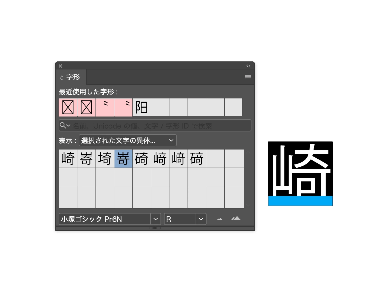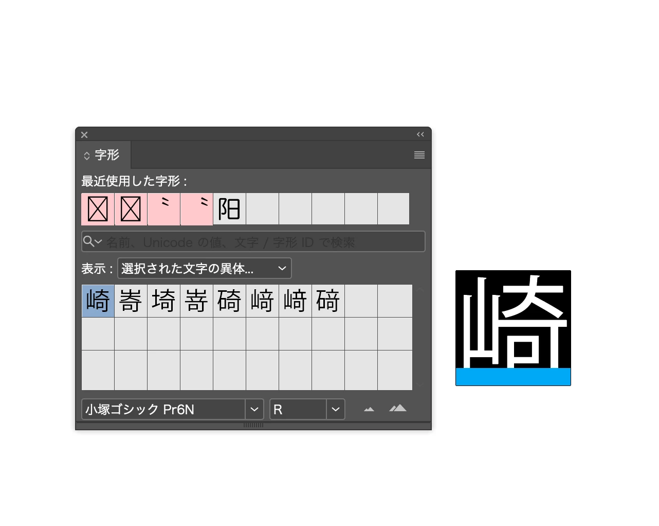 字形パレットで文字が適応されない