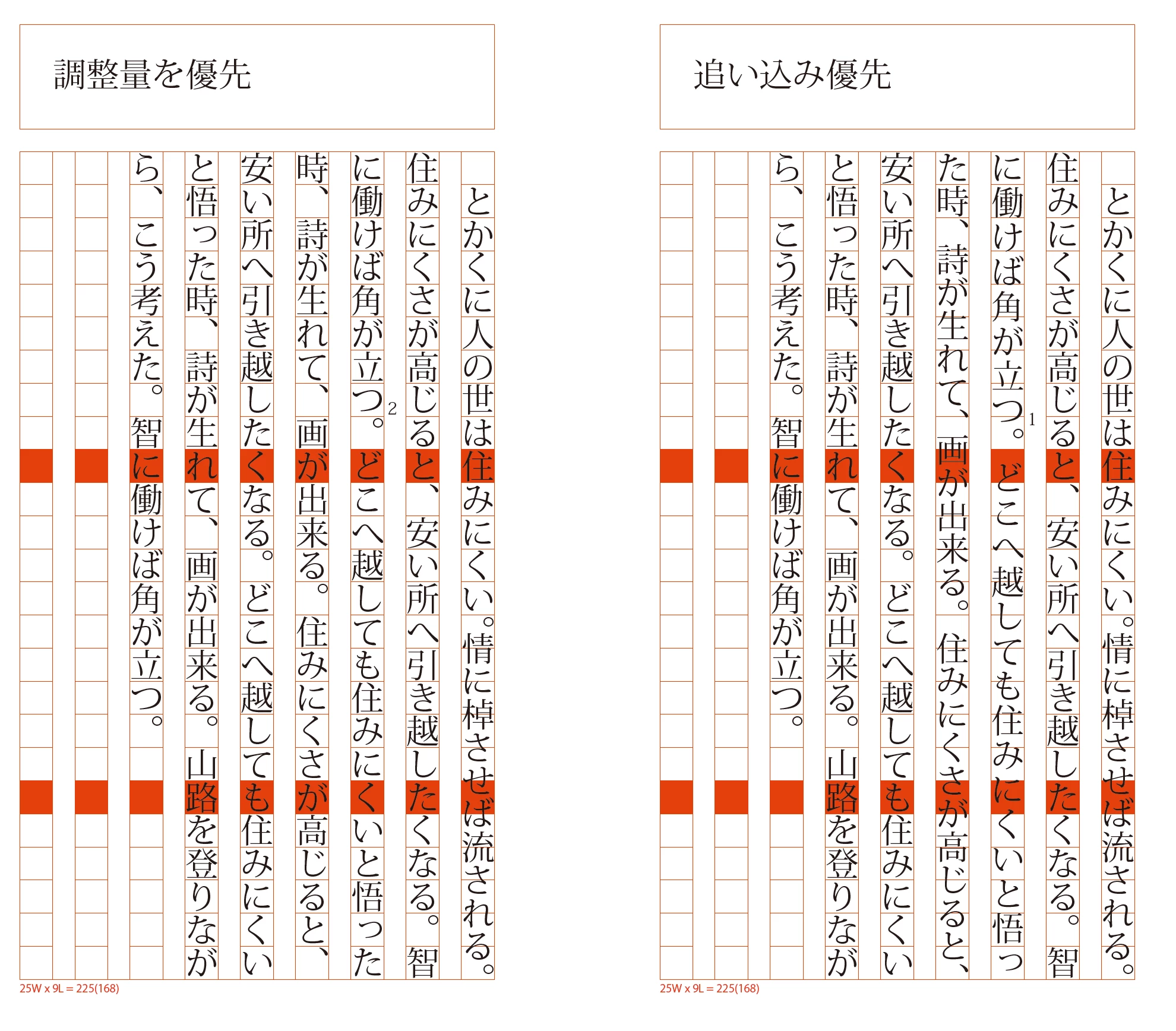 そこに、2枚目のように後注を設定した際、1文字追い出されるのを防ぐ方法は