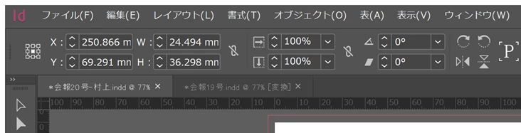 Win,Mac とも拡大縮小 Xパーセント 変更をするとオブジェクトの大きさは変わるが コントロールパネル上は100%のまま表示が変わらない。