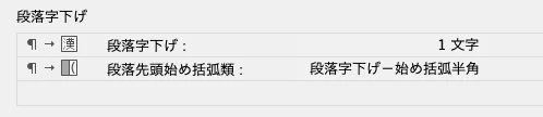 文字組みアキ量設定の「段落字下げ」を設定します。