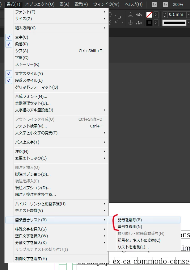 画像赤部分がどちらか「削除」になっていれば、箇条書き設定が適用されています。削除してください。