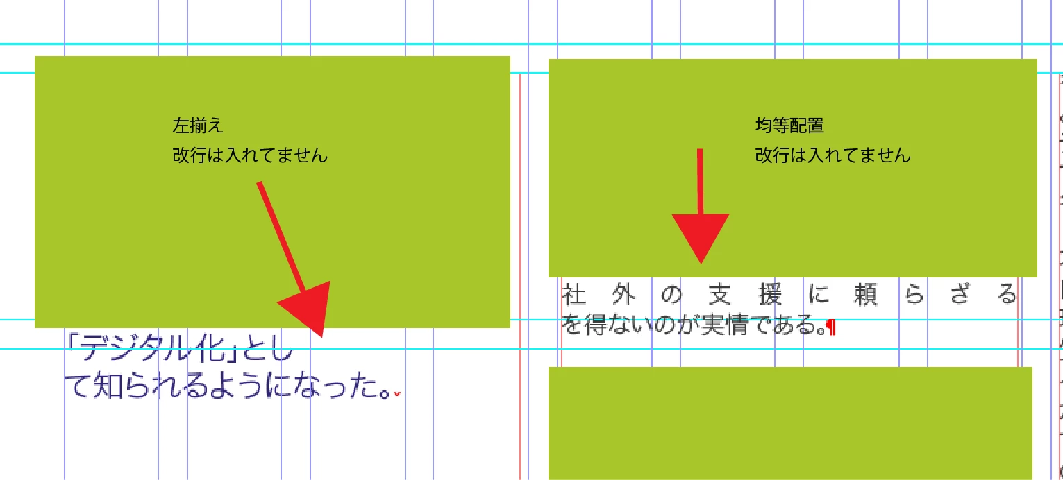 ちなみに均等配置にしていますが、左揃えにしても変な位置で改行になります。