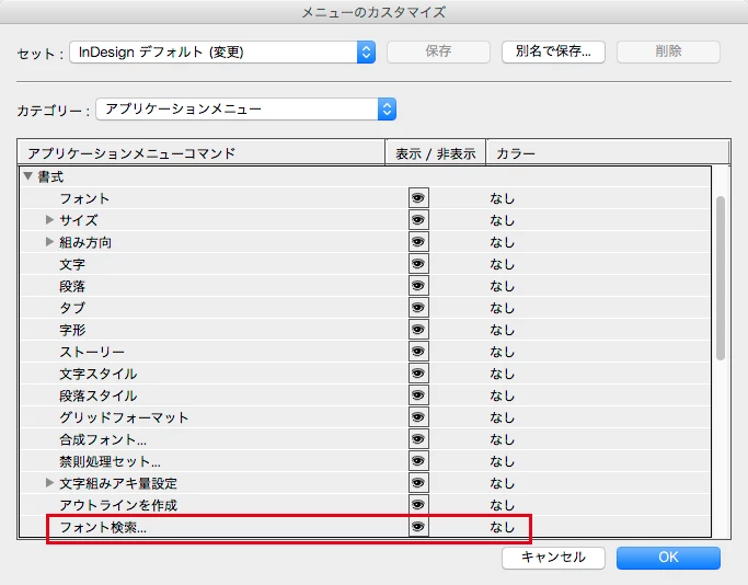 OS10.8.5、Mac miniにてIndesign CS6を使用しておりますが、書式メニューから「アウトラインを作成」と「大文字と小文字の変更」の間にあるはずの「フォント検索」が消えてしまいました。同じ仕様のMacBookAirでは表示されています。とりあえず、MacminiのIndesignをアンインストールし、最初から入れ直してみましたが直りません。何か対処方法はないでしょうか?
