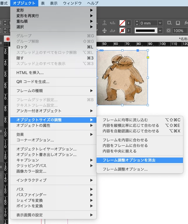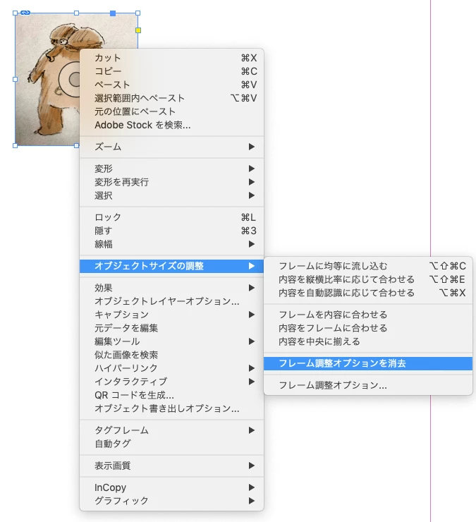 また、画像をファインダーからドラッグ&ドロップで配置した場合、必ず微妙にトリミングされた状態で配置されます。これも前はこんなことなかった気がします。