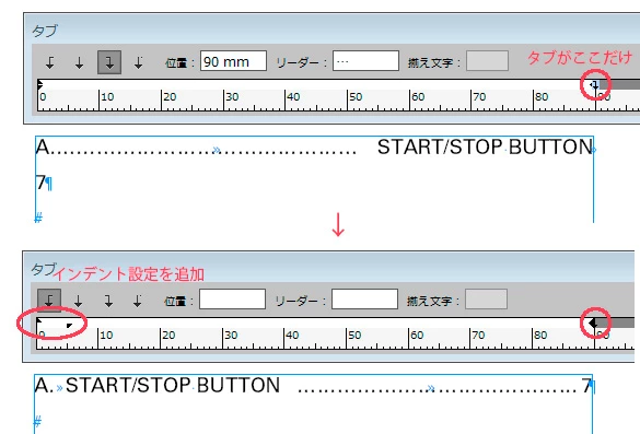 項目と番号間:^t