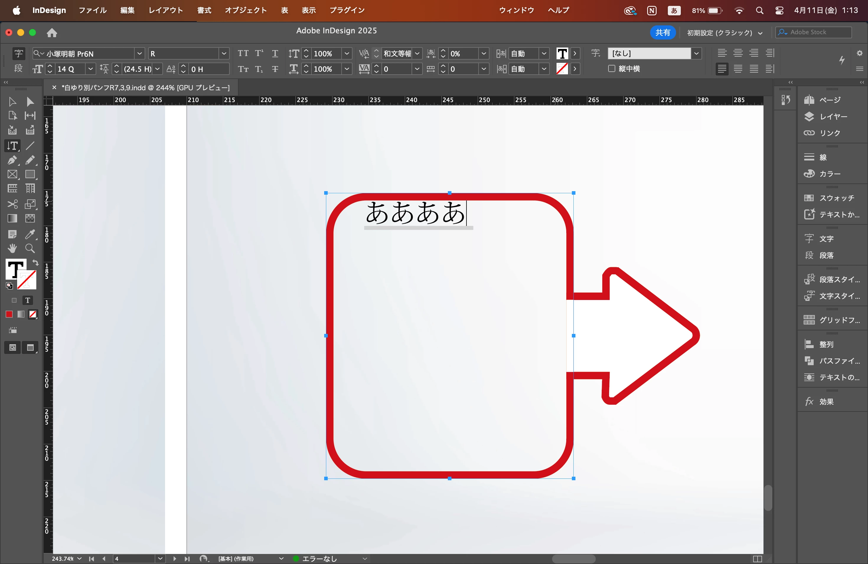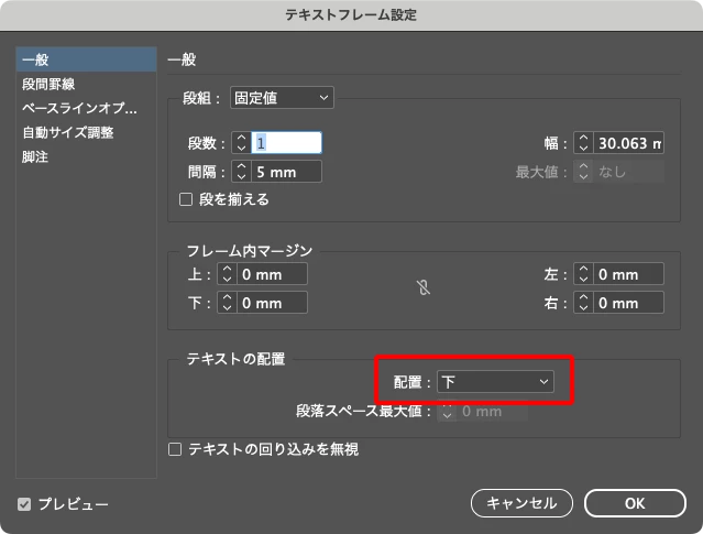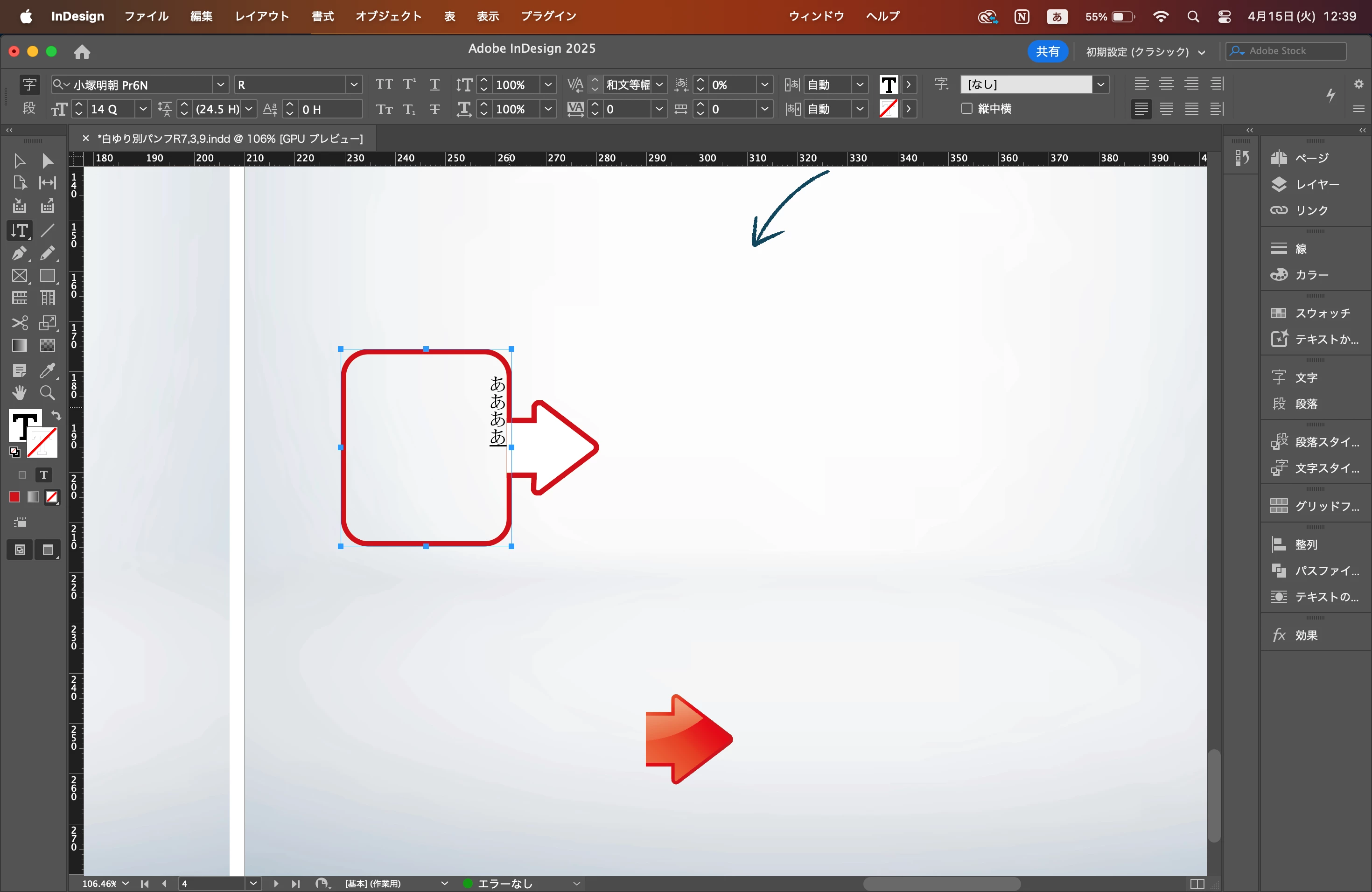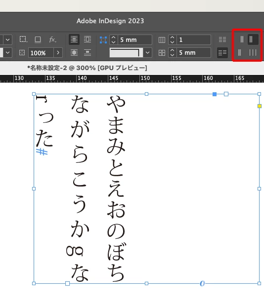 すでにあるテキストフレームの組み方向変更については前述のメニュー操作か、