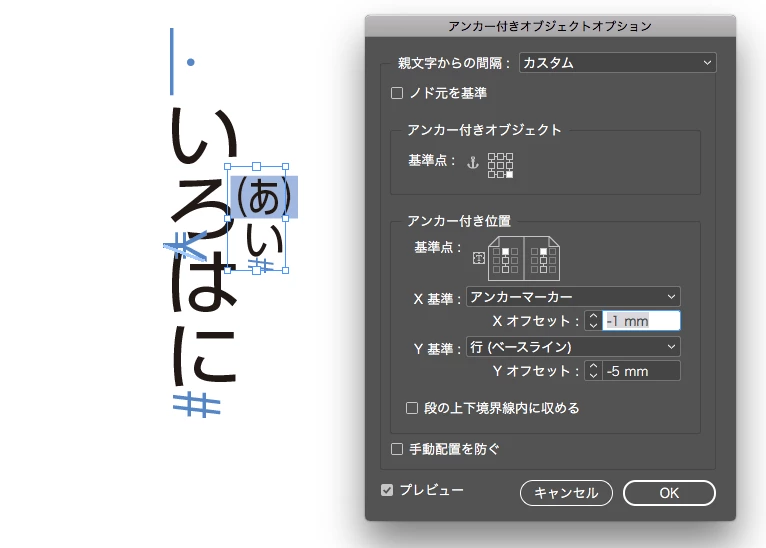 縦書きの文章中に括弧付きのルビを振っているのですが、クライアントから括弧は文字の横にくるようにと依頼がありました。