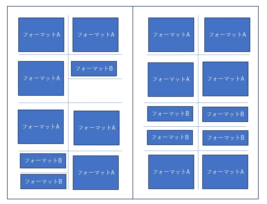 1つのフォーマットにデータを流し込むことはできているのですが、2つのフォーマットを織り交ぜて自動組版をすることは可能でしょうか?