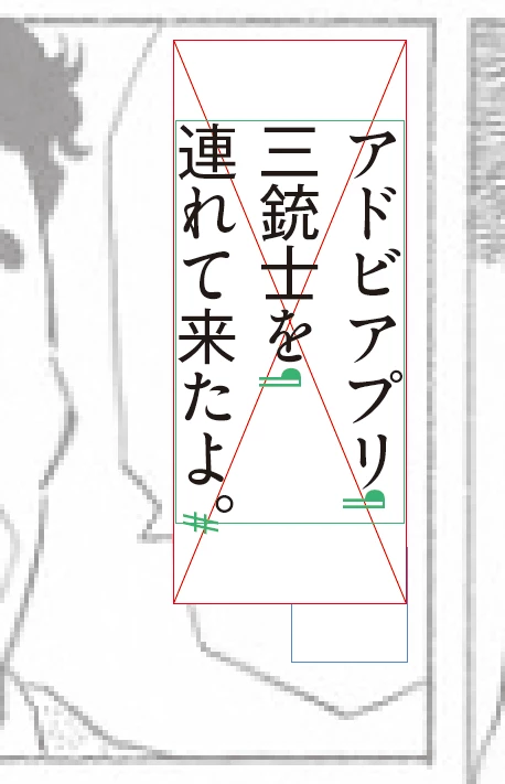 その作業自体が、実質的に「紙の漫画原稿に、文字部分だけ打ち出したものを切り貼りする」ような作業と同じになっていますので、基本的には目見当での位置合わせになってきます。