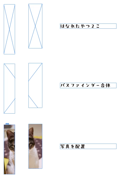 パスファインダーで見た目は合体できるが、写真を配置したときに二つになる、というのもよくわかりません。