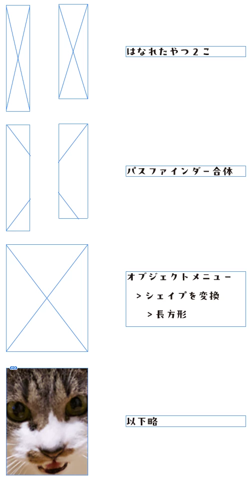 InDesignで長方形フレームを、例えば大きさの違う二つを結合することは可能でしょうか。ふたつのフレーム同士は離れて配置されている状態です。パスファインダーで見た目は合体可能ですが、写真を配置したときに二つになってしまいます。完全に一つの矩形になるやり方があればご教授願います。