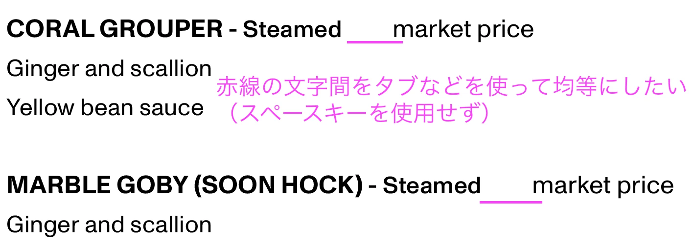 こんなかんじで半角スペースが2コ連続した時だけ水平比率あげあげの文字スタイルがあたる仕組みとか。