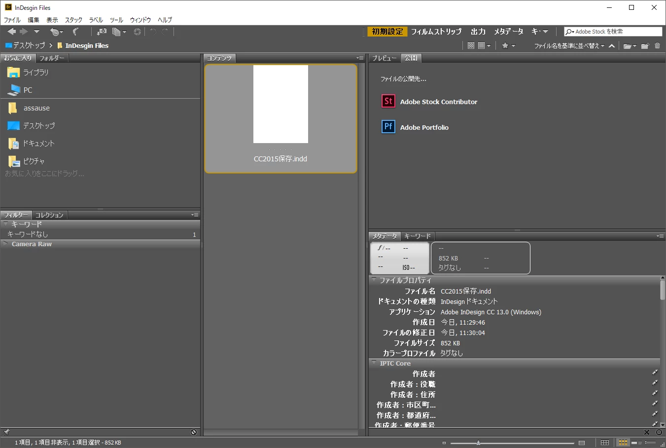 下記はファイル名を「CC2015保存.indd」としたものですが、