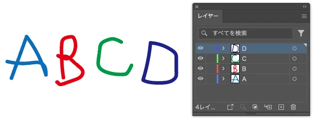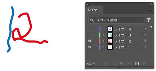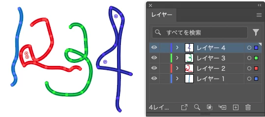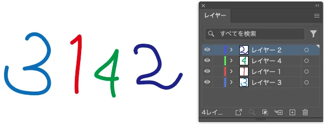 「test_123.ai」をレイヤー4枚にしてみたのですが,「レイヤー3・4」が表示されませんでした。