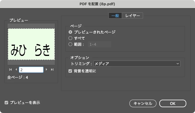 In Designで見開きのポートフォリオを作成し、PDF形式で保存をしたのですが、
