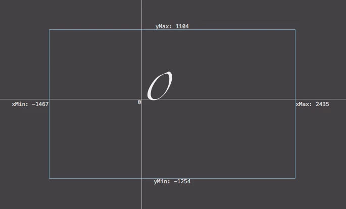 FontBBoxは、そのフォントが持つ字形を全て重ね合わせたときの最外周の矩形です。この矩形の範囲であれば、絶対に字形が欠けない安全領域です。上図の青線はZapfinoのFontBBoxで、かなり広いことがわかります。