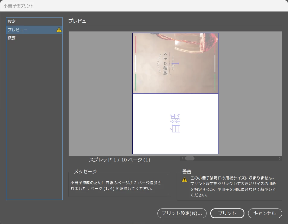 小冊子をプリントがしたく、こちらのページを参考に 参考ページ:https://withfun.info/lesson/archive/363 作業してみましたが、