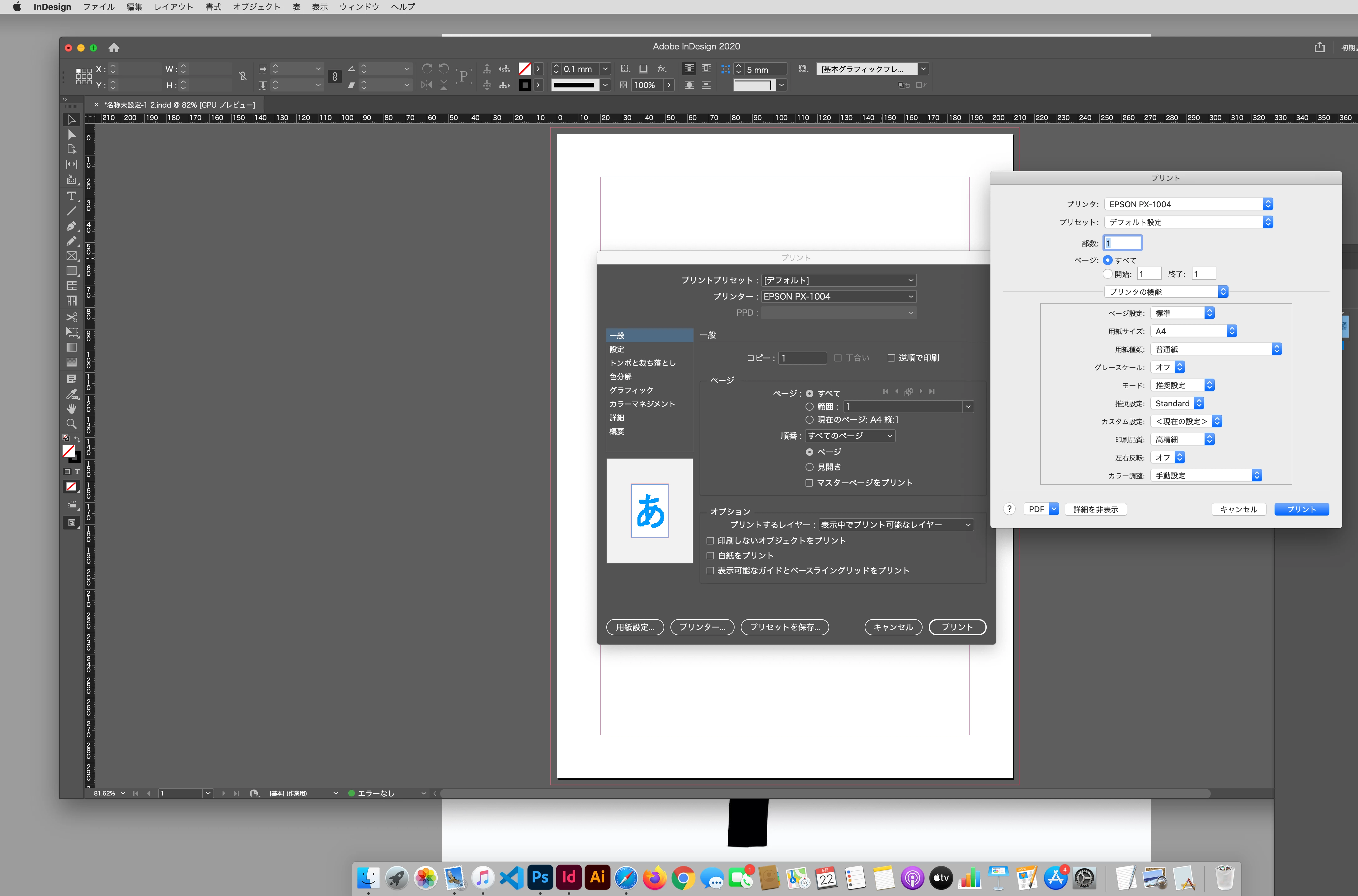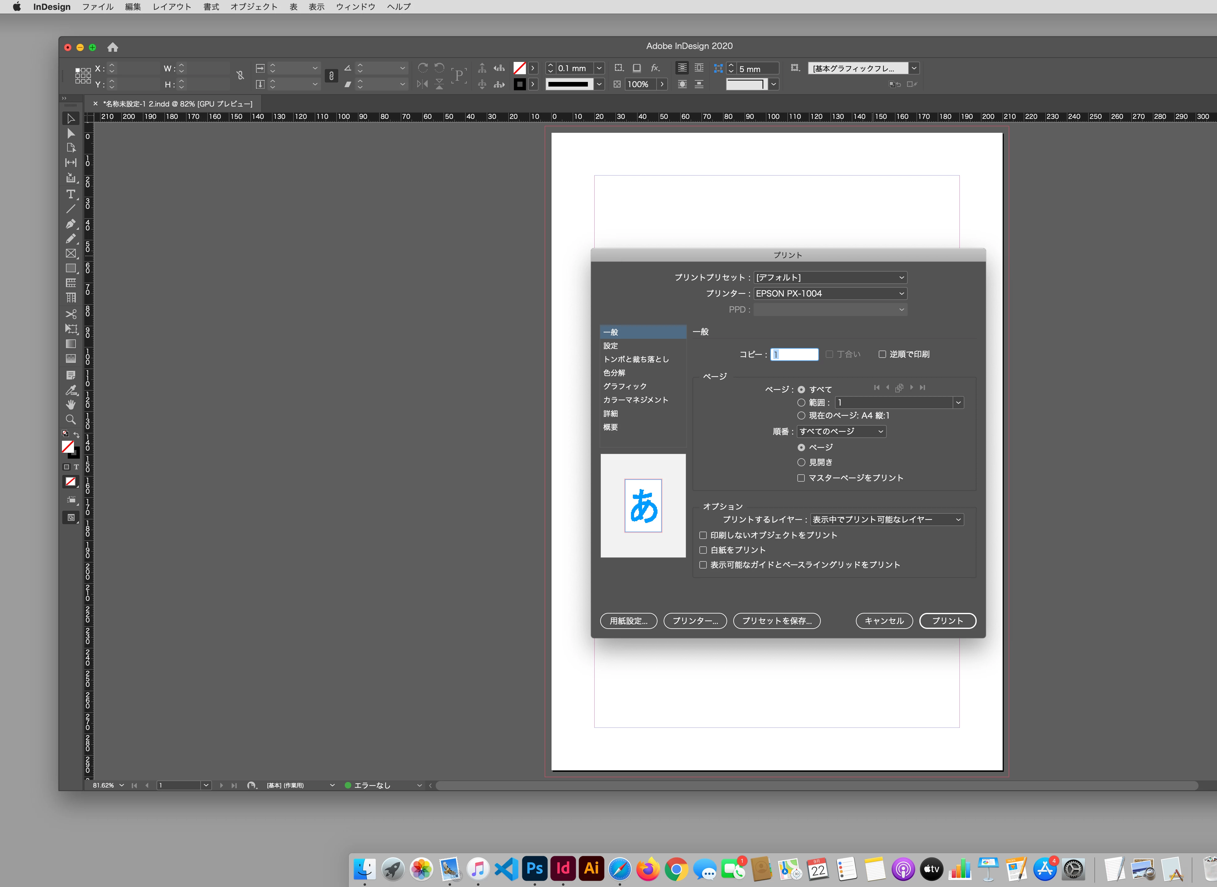 開くのですが、インデザインではインデザインのプリント設定と言うのが開きません。