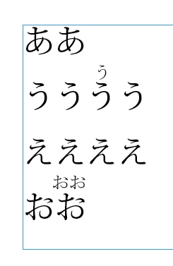 InDesignで消えたルビつき文字と消えなかったルビつき文字を比較すると、以下のようになります。