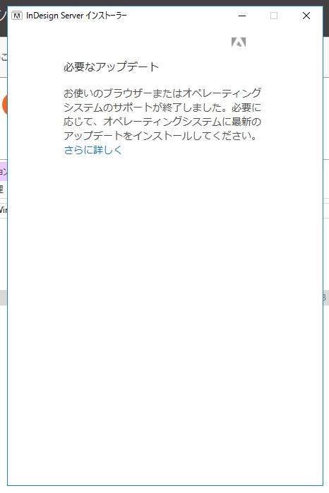 インストーラを起動すると以下の様なメッセージがでて先にすすめない状況でした。