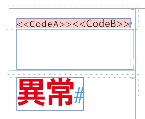 因みにバーコード版で「*<<CodeA>><<CodeB>>*」として、「<<CodeA>>」まで表示で「<<CodeB>>」が表示されない)試したところ「<<CodeB>>」まで正常に書き出されたので、同じテキストフレーム内で1つでもフィールドの一部でも表示されていれば正常に動作するのかも知れませんね。