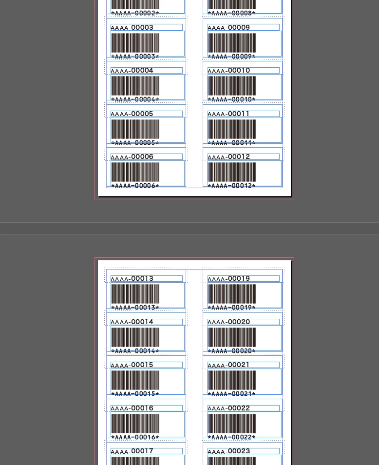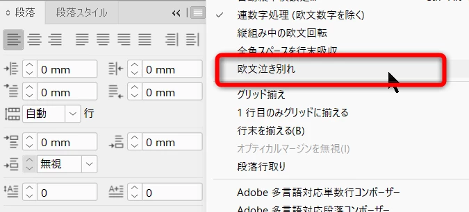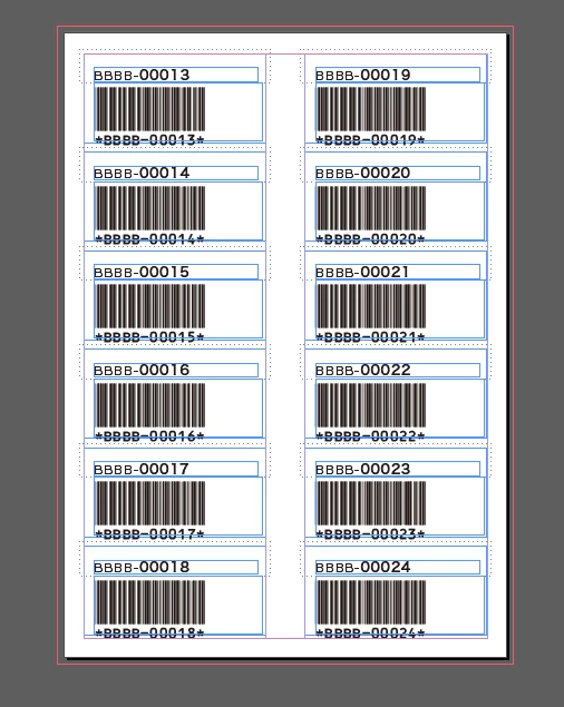 バーコードの領域にカーソルを立ててCtrl+Aで文字を全選択(見えないですけど)して、段落パネルから「欧文泣き別れ」をクリックしてください。すると次のようになります。