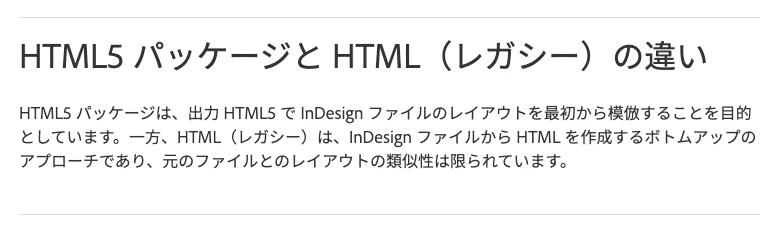 BBewitched_soldier8176ParticipantForum|Forum|1 year agoDecember 19, 2024QuestionInDesign2025のオンラインパブリッシングForum|Forum|1 year agoDecember 19, 20241 reply272 viewsInDesign2025でオンラインパブリッシングで保存しようとしたところ、公開画面の左下に「HTML5パッケージを書き出し」というボタンがありました。オンラインパブリッシングは久しぶりに使うので、以前のバージョンにこの機能はありましたでしょうか。 今までは、固定レイアウトePubで書き出してzip分解してそこにindex.htmlファイルを加えてブラウザで見れるようにしていました。簡単なファイルでテストしたところほぼ同じような感じでした。「HTML5パッケージを書き出し」が加わったのはやはりブラウザでの閲覧を主な目的としてのことでしょうか。EPUB