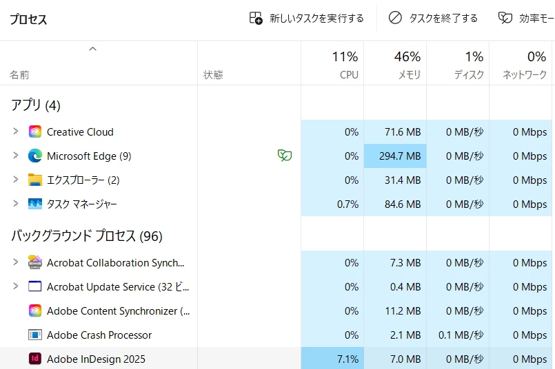 失礼します。今まで問題なく使用できていたInDesign2025(Windows11)、最新バージョンが起動しなくなりました。InDesignを開こうとしたら、30分以上待っても起動せず、ネット上にある方法を試しても改善しません。再起動、アンインストール&再インストール、コントロールパネルからの修復、2024年版のダウンロードも試してみたのですが、やはりInDesignが起動しません。イラレなどは問題なく起動して使用できます。