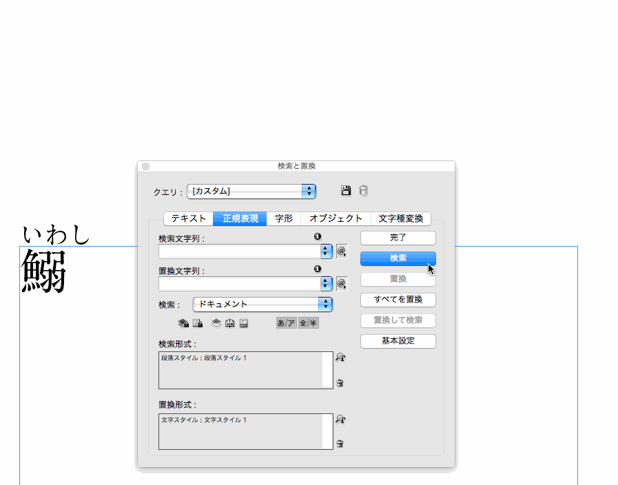 inDesignCS6の置換(正規表現)で、たとえば、検索文字列をそのまま変更せずに、文字スタイルだけを変更したい場合があります。