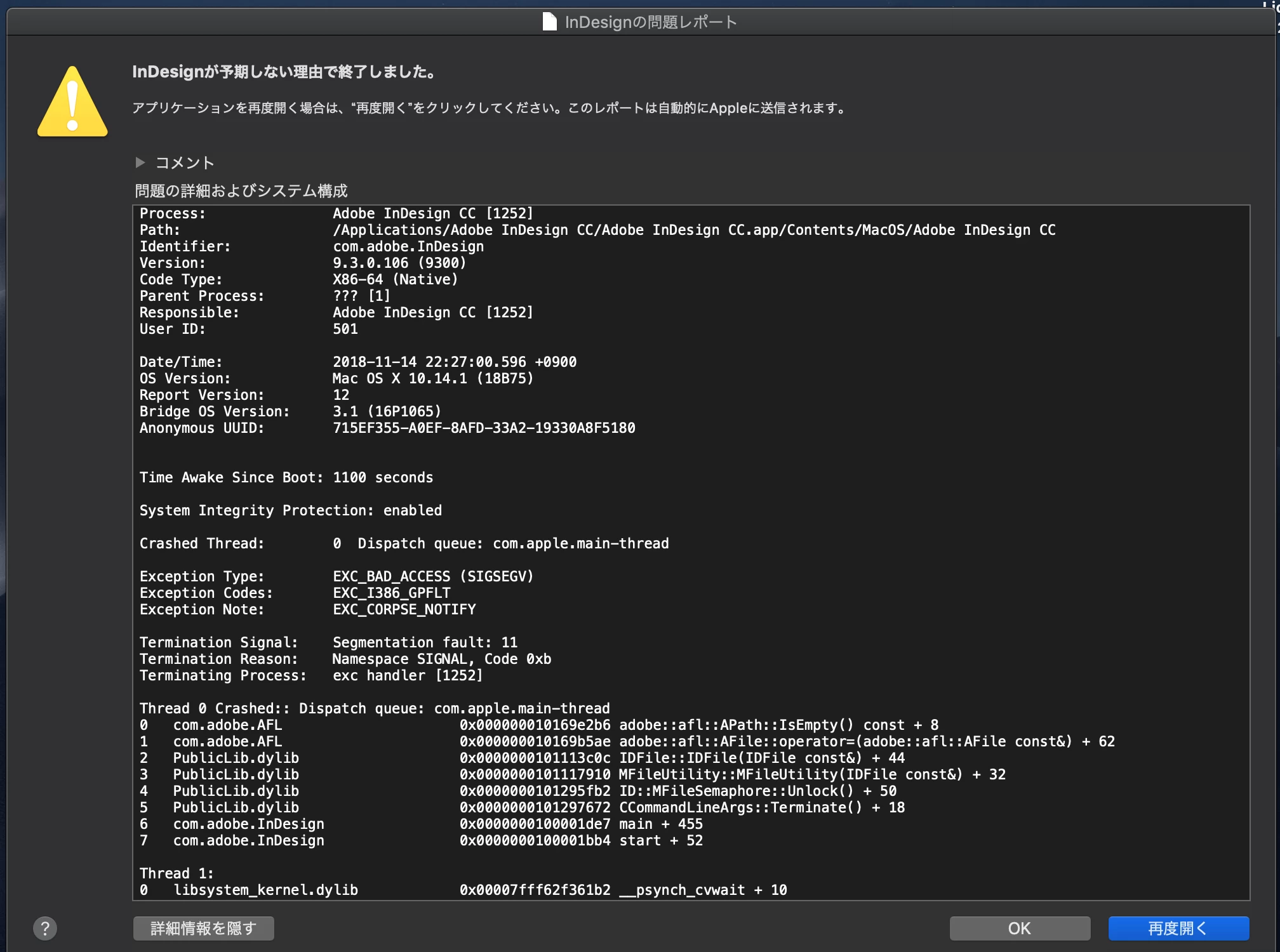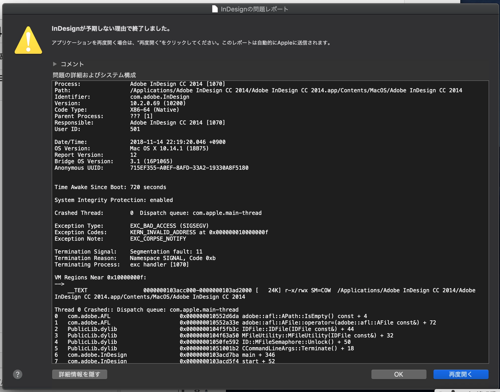 macOS Mojave 10.14.1 & InDesign CC 及び CC 2014 でクラッシュが発生する