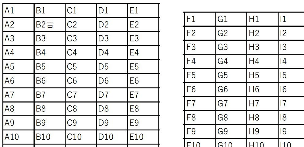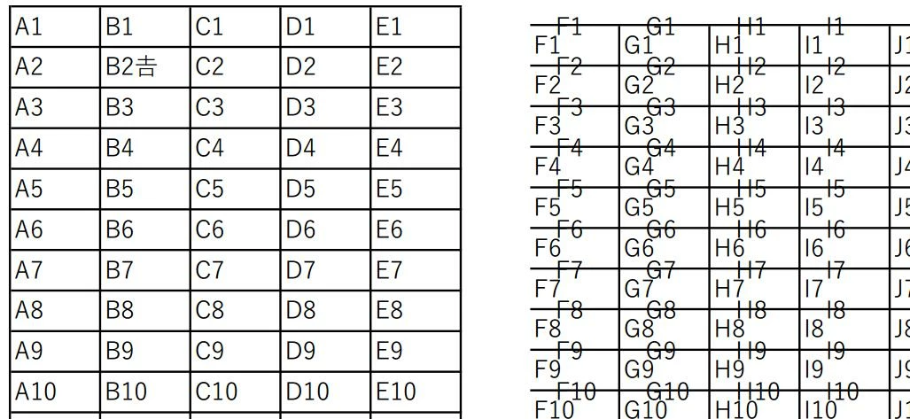 左の表で隠しておいた一部分が表れて、右の表に文字が重なっています。