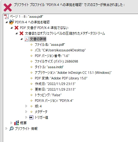 PDF/X4をInDesignに配置し、配置したInDesignからさらにPDF/X4を書き出すと準拠がはずれます。