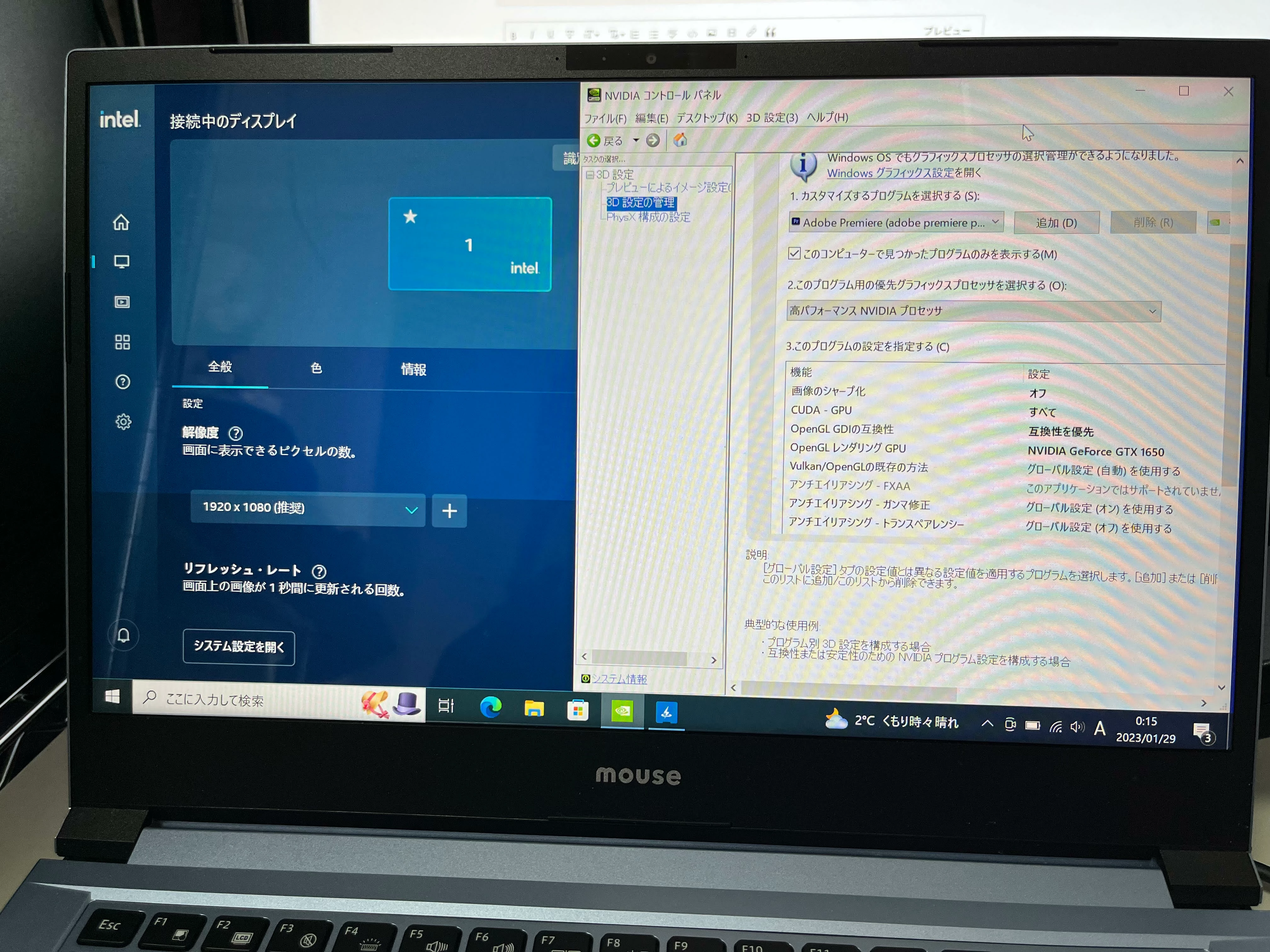 - INTELとNVIDIAのドライバーはマウスコンピューターのサイトからダウンロードします。安定版を置いているそうなのでこのページのもので使うようにしてくださいとの事でした。どうしてもインストール出来ない時は自己責任でNVIDIAのサイトからダウンロードさせるとの事です。