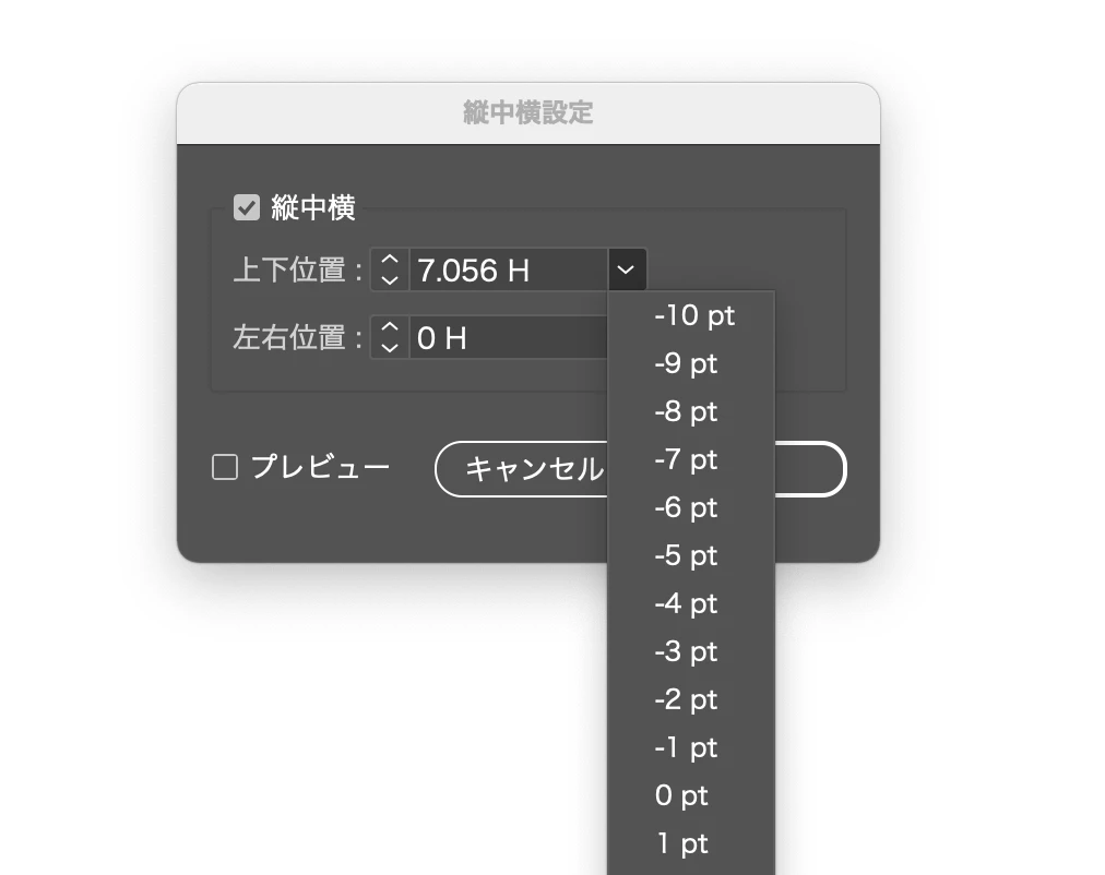 縦組みテキストの縦中横のシフト量がpoint整数値でしか動かせない。