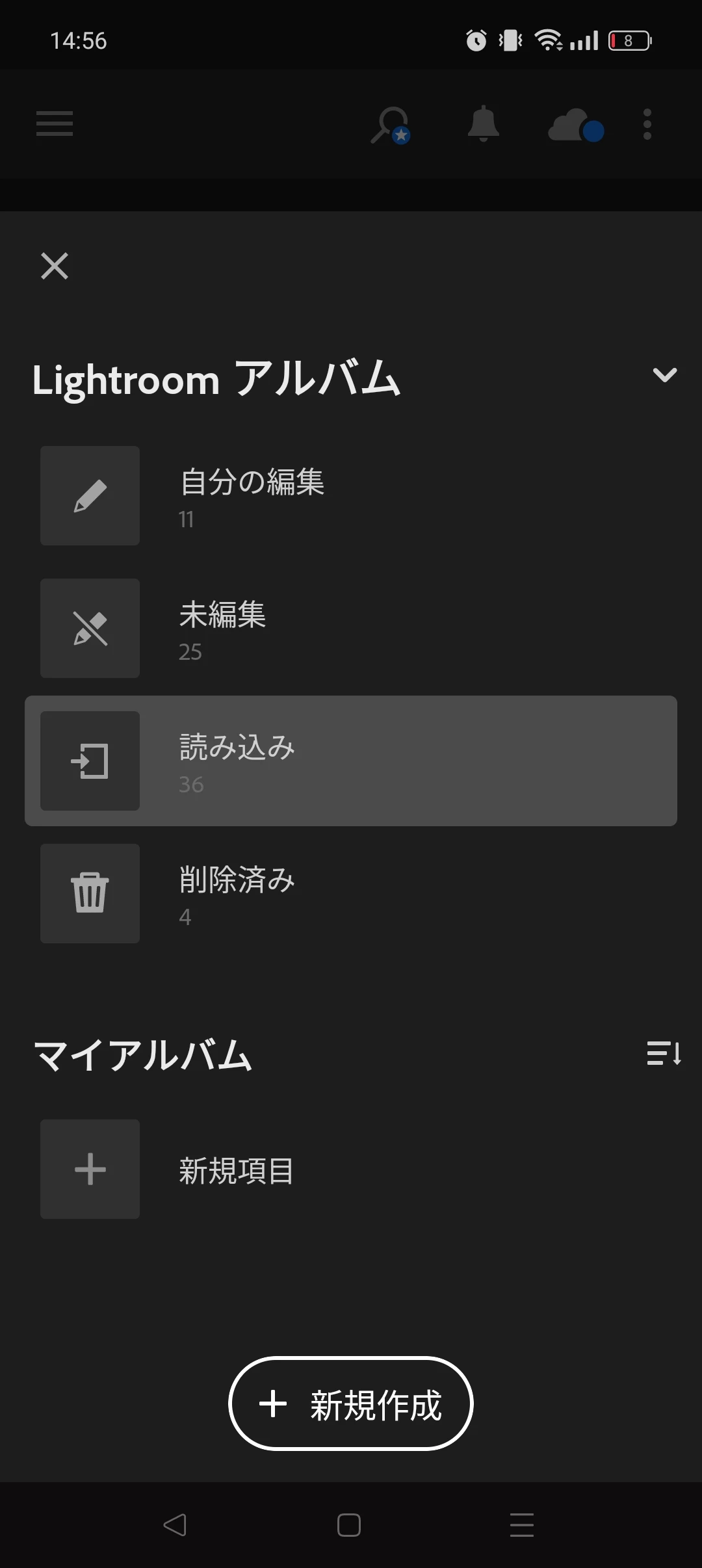 今までは すべての写真、自分の変種、未編集、読み込み、削除済みが表示されていたのですが、今はすべての写真を除いた4つしか表示されません。