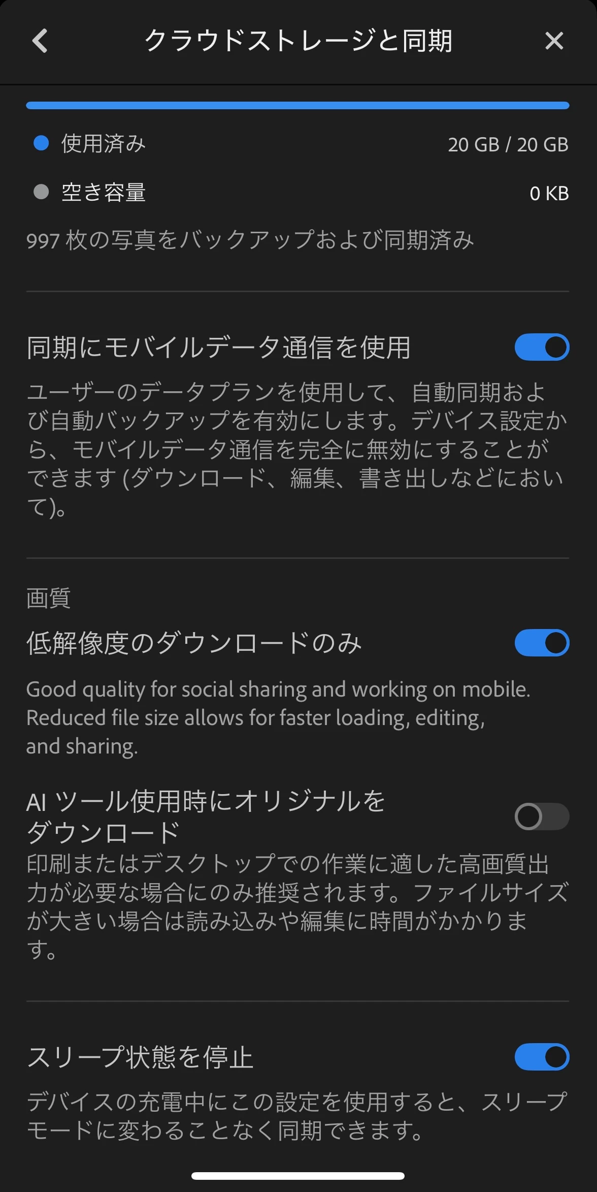 クラウドストレージの容量を空けたうえで、設定をオンにして動作をお確かめください。