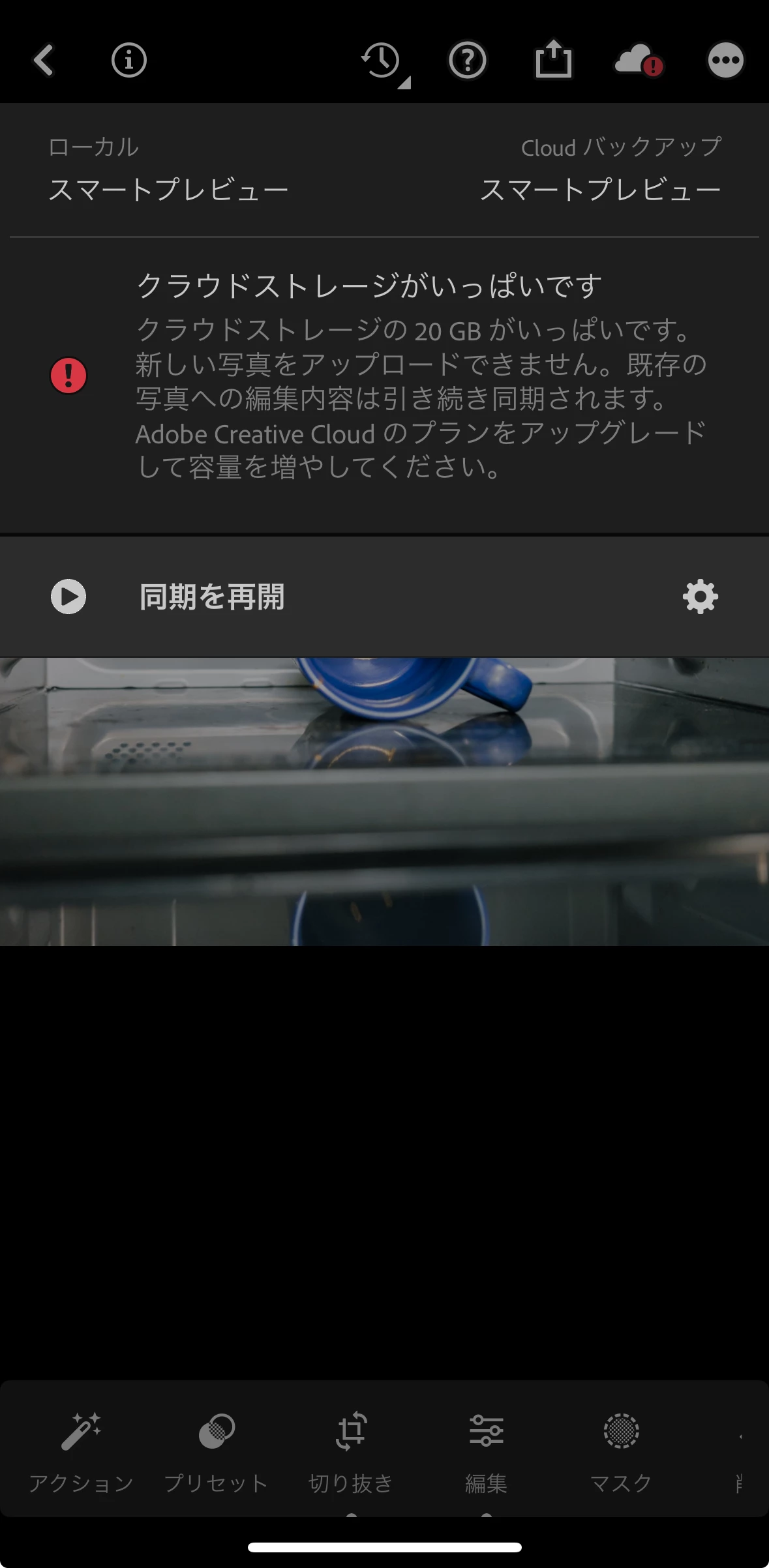 ご指摘の通り、画面右上のクラウドストレージがいっぱいで