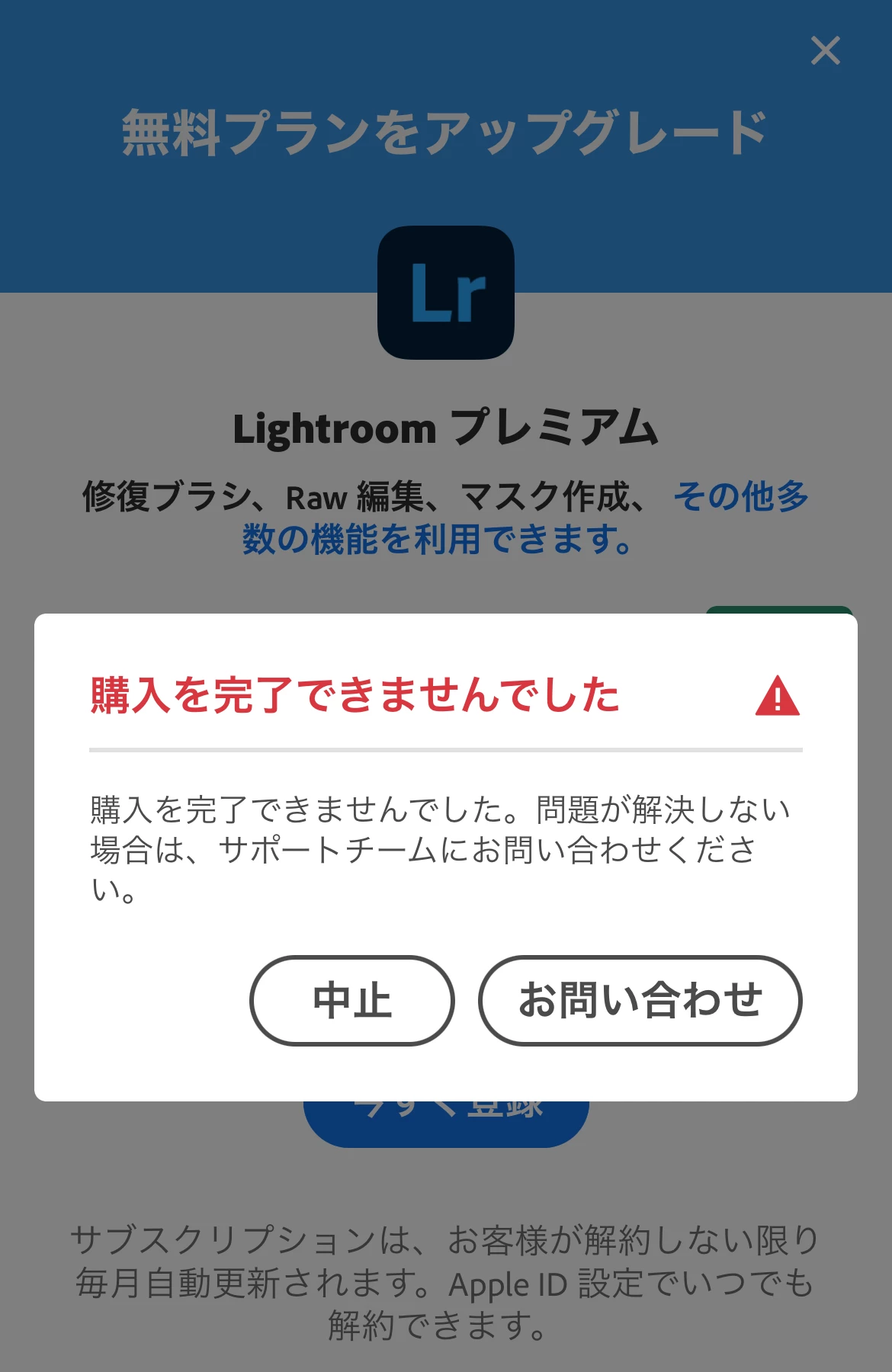 モバイル版ということでその画面が出るとした場合、Apple IDの支払い情報が適切かどうか、というところがあります。