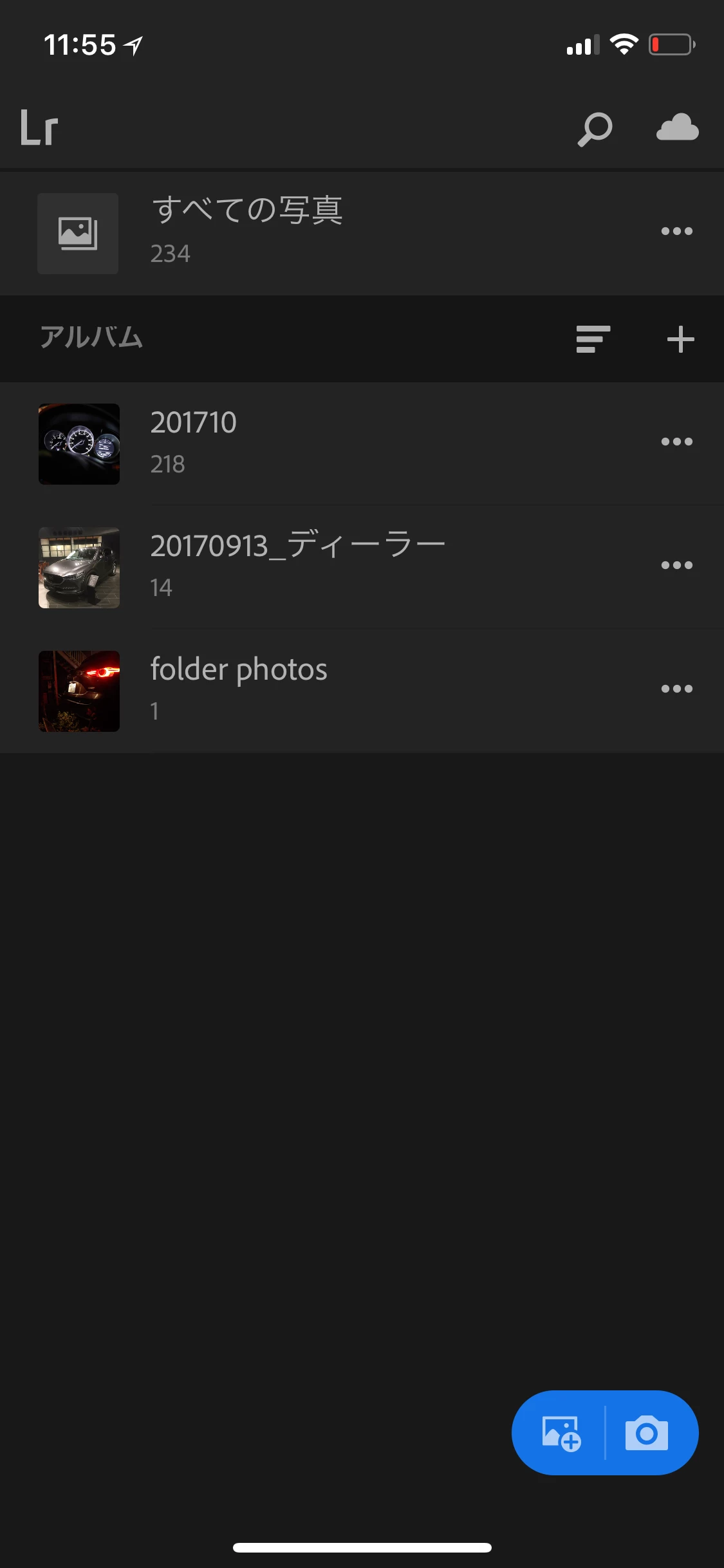 ・Lightroom CCを開くと、サブフォルダの名称でアルバム名が作成され、画像が同期されている。