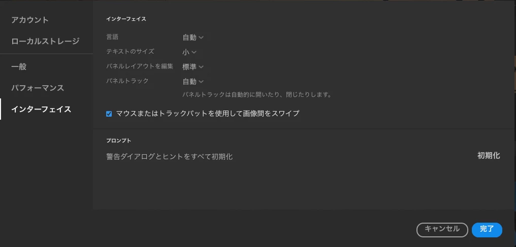 Lightroomの環境設定を開いたのですが、貼っていただいたスクリーンショットのような画面とは全然違うのですが、バーションが違うのでしょうか?
