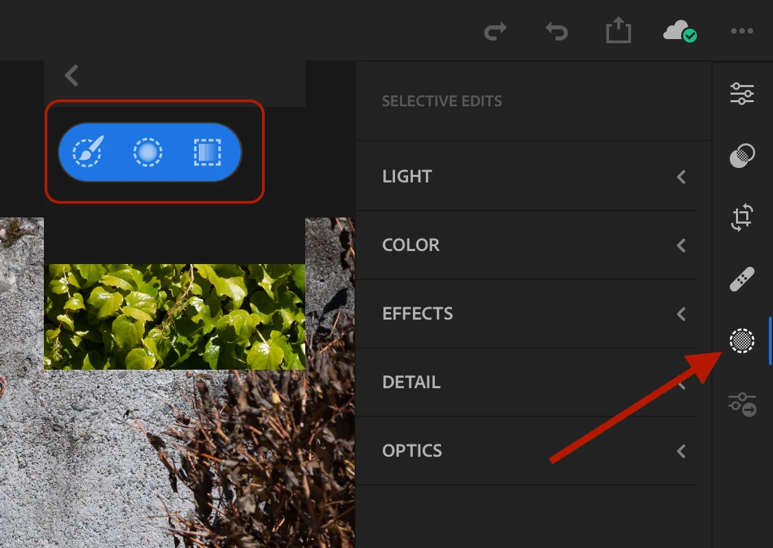 スマホ版のLightroom CCを使うと部分補正ボタンがあるのですが、PC版のLightroom CCではそのボタンはないのでしょうか?