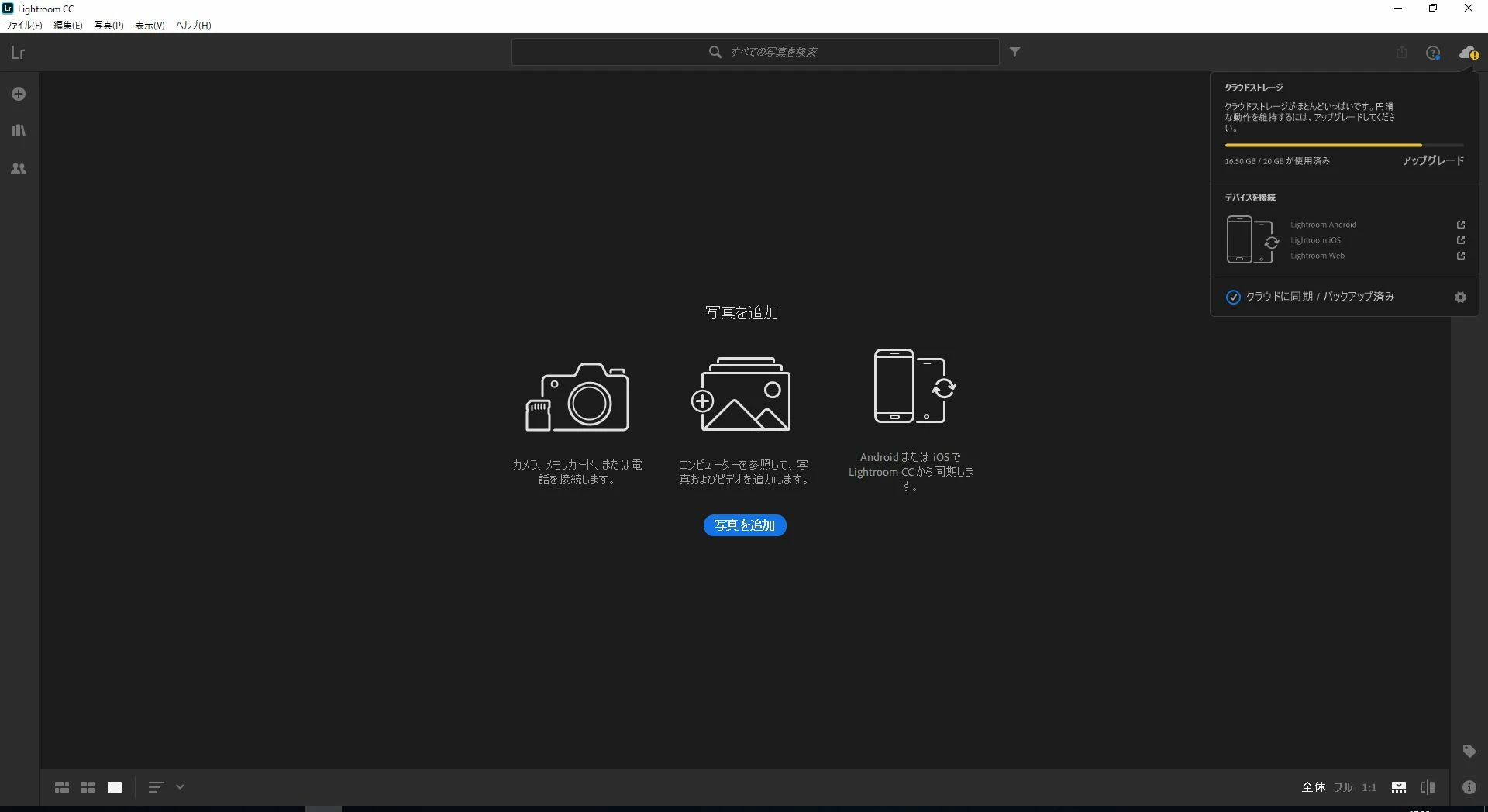 また、Lightroom CCの場合、写真データもクラウドストレージ上に保存されますので、