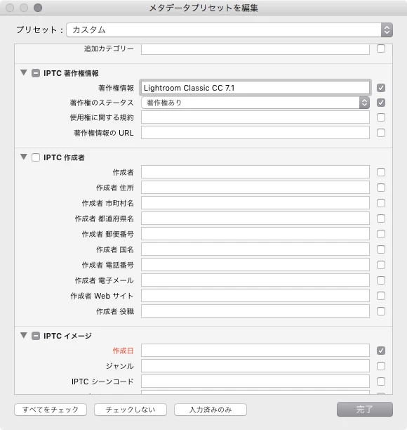 頻繁に使うようならメタデータプリセットを保存しておくこともできます。