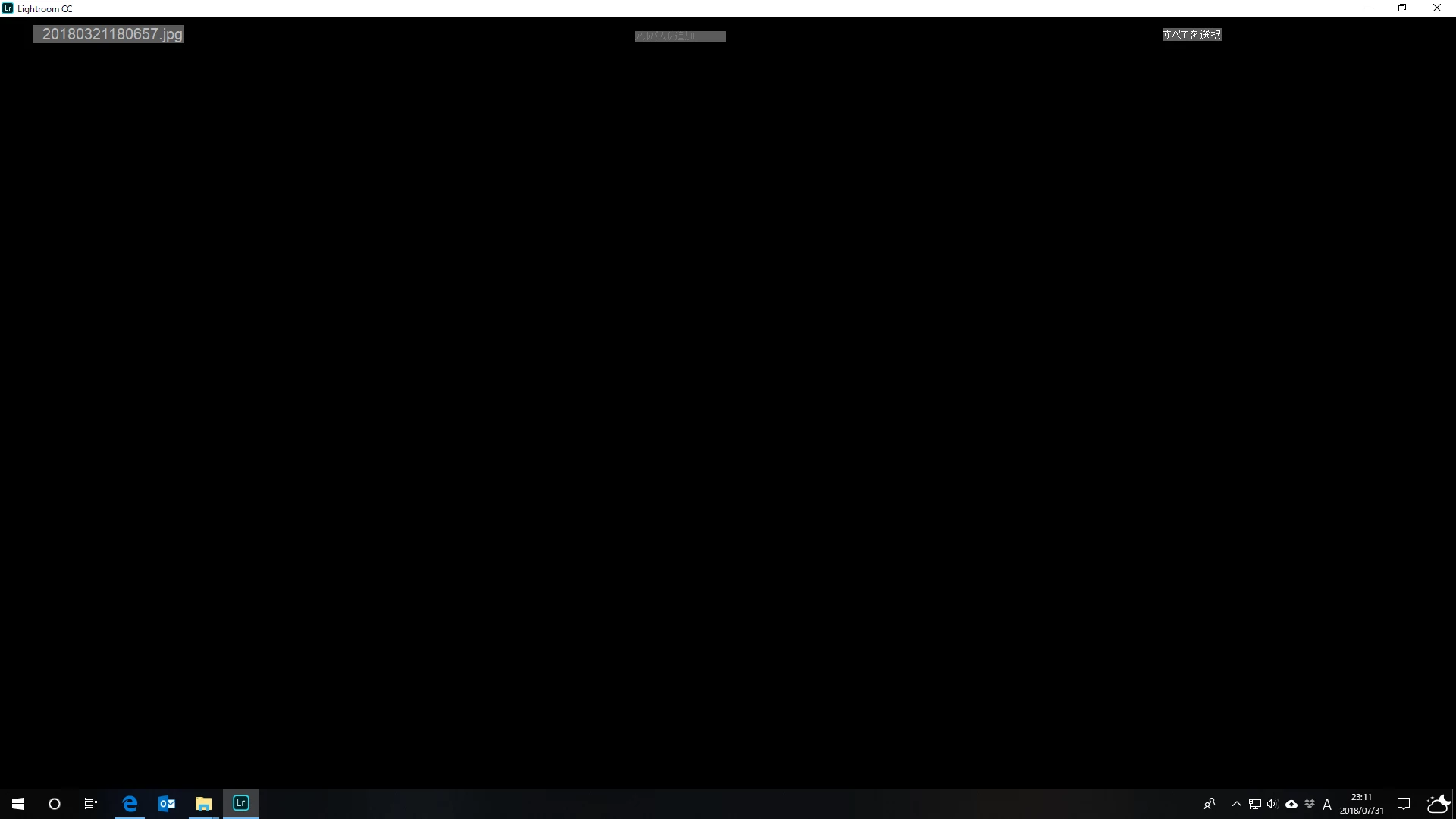 上記画面から、左上のファイル名をクリックするとエクスプローラーの写真選択Windowに戻るのですが、何度選んでもこのWindow のように真っ黒なWindowで写真を取り込むことができません。