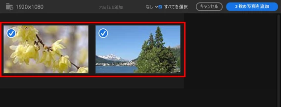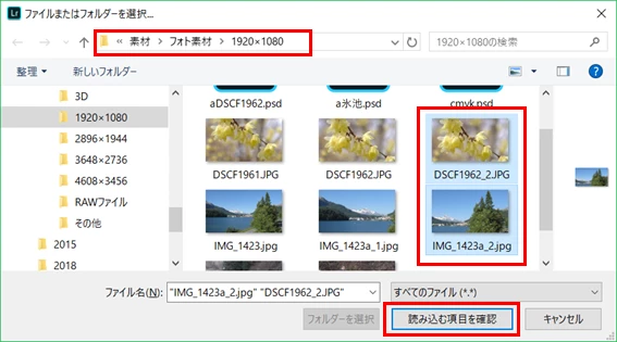 写真を追加で、エクスプローラーから取り込みたいフォルダを選びEnterすると、上のようなウィンドウに変わりそこから反応がありません。