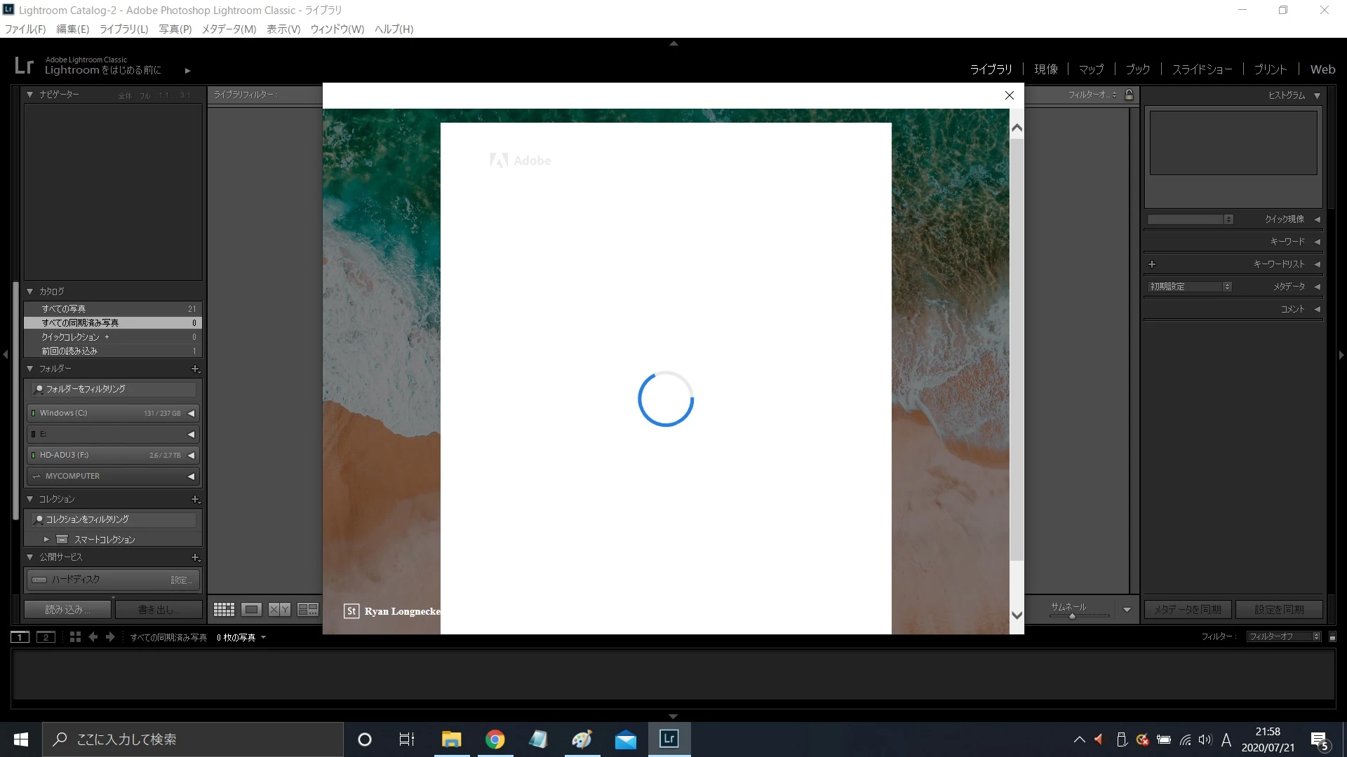 lightroom classicを起動すると、ログイン・ログアウトを繰り返す