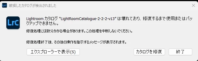 - カタログが破損し、修復も出来なくなりました。