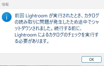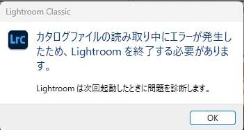 - LightRoomをアンインストールし、インストールし直して、画像が何も入っていない、空っぽのカタログを作って画像を読み込みなおしてもカタログが破損します。